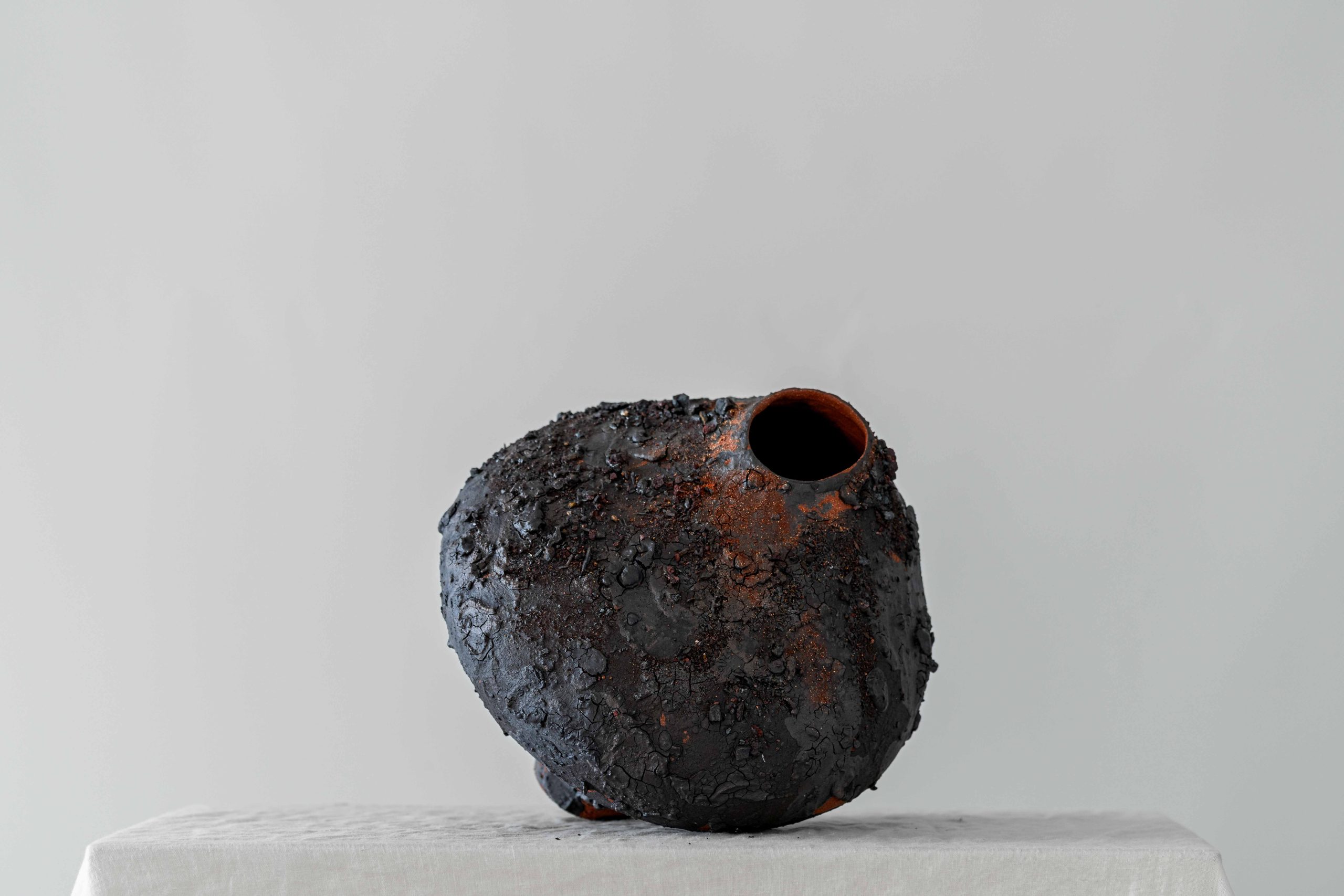 Η δουλειά μου χαρακτηρίζεται από οργανικές φόρμες, γήινα χρώματα και διαφορετικές υφές, δίνοντας έμφαση στις μικρές λεπτομέρειες και ατέλειες που αποτυπώνουν την ειλικρίνεια της δημιουργικής διαδικασίας.